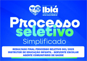 RESULTADO FINAL DO PROCESSO SELETIVO 001/2025 – DE TÍTULOS E HABILITAÇÃO PARA CONTRATAÇÃO DE PESSOAL PARA PREENCHIMENTO DE VAGAS NO CARGO PÚBLICO DE QUADRO DE PESSOAL DO PODER EXECUTIVO NA PREFEITURA MUNICIPAL DE IBIÁ MG. Agente de Administração Agente Comunitário de Saúde Assistente Social Auxiliar de Consultório Dentista Auxiliar de