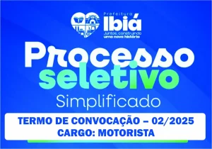 Termo de Convocação 02/2025 – Processo Seletivo Simplificado 001/2025 | Motorista