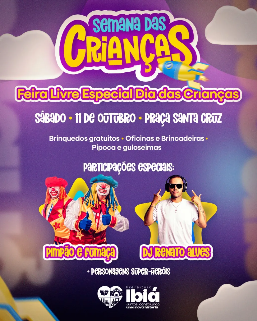 Neste sábado, 11 de outubro, Ibiá se transforma em um ponto de encontro da diversão com a Feira Livre Especial do Dia das Crianças. Realizada pela Prefeitura Municipal de Ibiá, em parceria com a Secretaria de Cultura, a ação traz uma programação repleta de atrações pensadas para encantar crianças e suas famílias, celebrando a infância com muita alegria e criatividade.