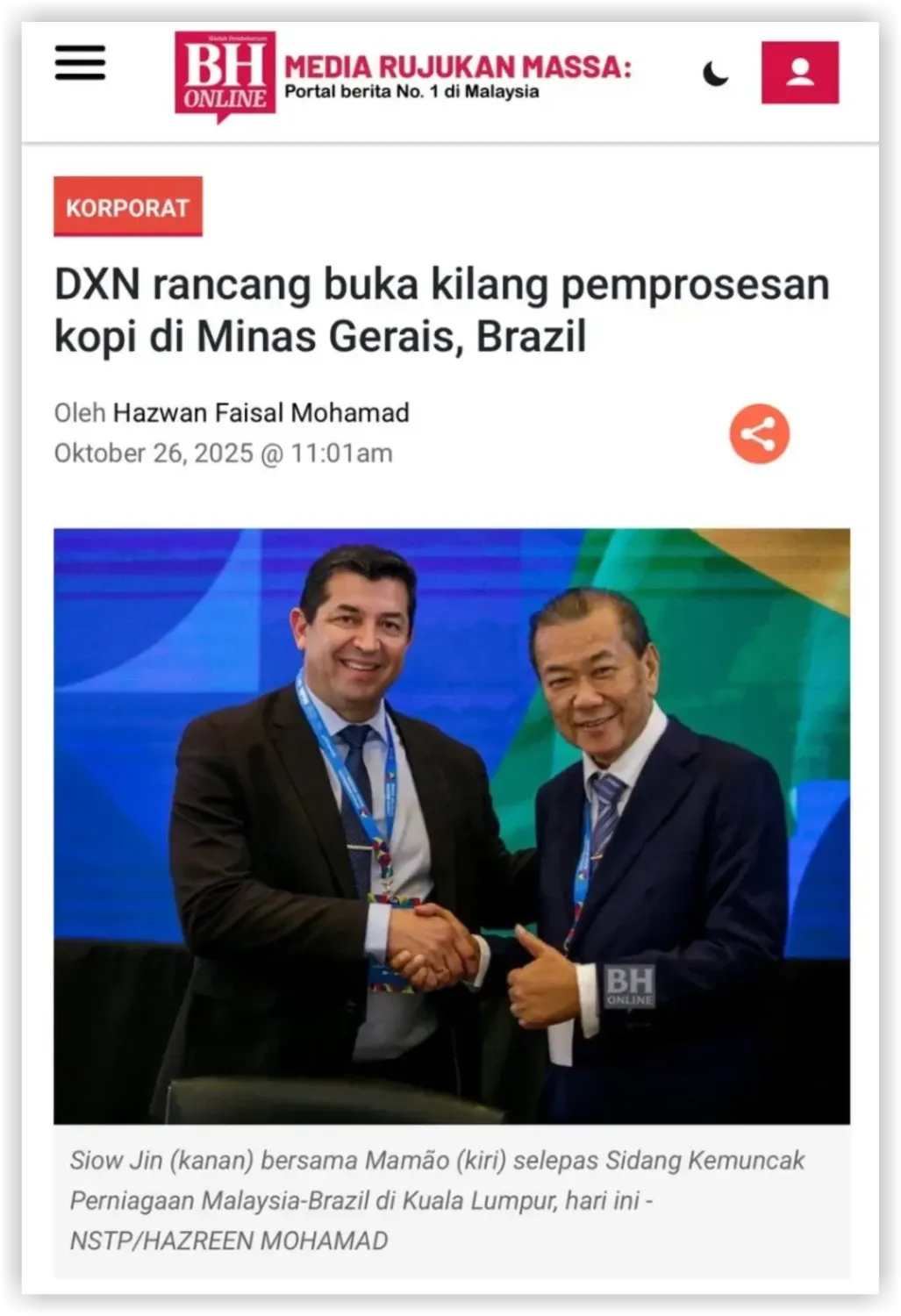 A repercussão positiva na mídia malaia se deu principalmente pelo anúncio de que a gigante multinacional DXN Holdings Bhd confirmou a implantação de uma moderna unidade industrial em Ibiá, com investimento superior a US$ 40 milhões (algo em torno de R$ 215 milhões).